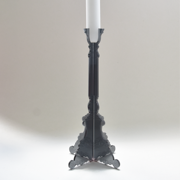Dieser minimalistische Kerzenleuchter fügt sich durch sein schlichtes und modernes Design in jede Umgebung ein. Durch die Neuinterpretation einer antiken Form wirkt der Kerzenständer klassich und modern zu gleich. Er setzt ein dezentes Statement und lässt die Kerze im Mittelpunkt stehen. Den Kerzenständer ziert eine feine und verspielte gravur, welche die Wirkung seiner Außenform zusätzlich unterstreicht.